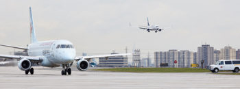 Aircraft use standard routes when arriving and departing from Toronto Pearson.
